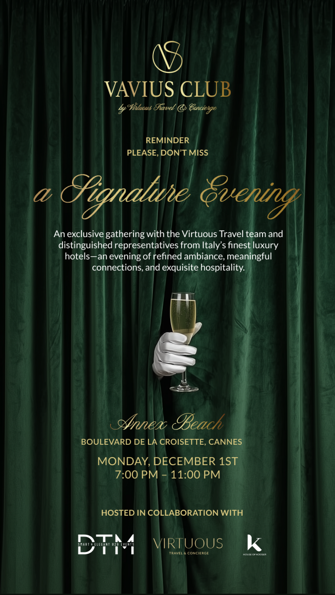 Deluxe Travel Market, in collaboration with The Vavius Club by Virtuous Travel & Concierge, is delighted to invite you to A Signature Evening — a refined seaside celebration on the French Riviera.